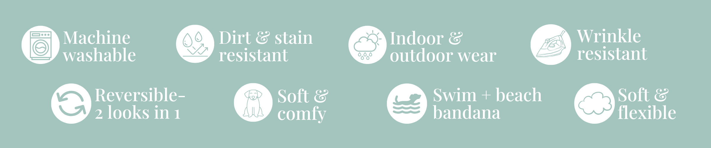 Each bandana is made with our signature dog friendly fabrics that are soft, durable, and completely washable so your pup can look their best through every family photo, cookie baking session, and snowy adventure.