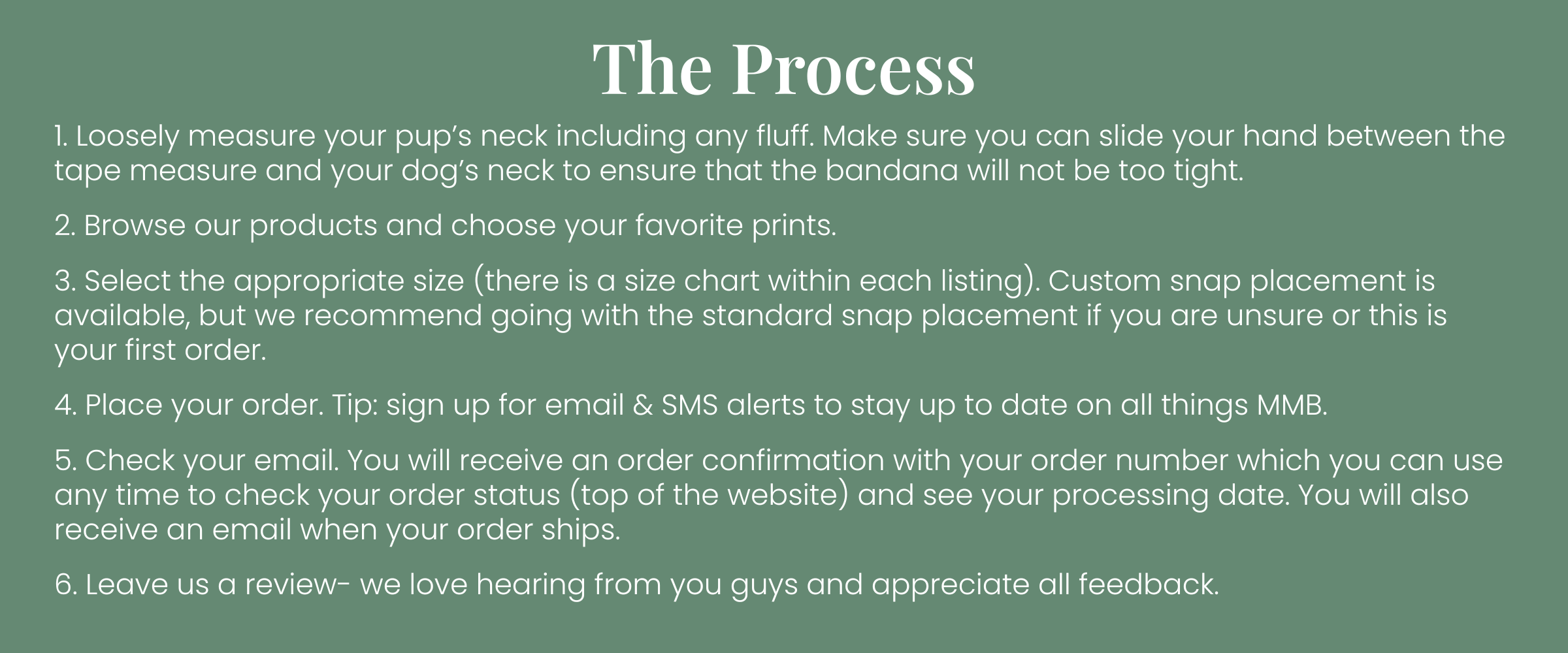 I started MMB in 2022 because I couldn't find cute, boy-friendly bandanas for my rescue pup, Murray. My brand began to rapidly evolve in the spring of 2023 when I introduced our best-selling Adventure Fabric™ as a solution to Murray constantly ruining his cotton and knit bandanas. I'm so glad you're here and I always am just a DM away. I love hearing from you guys so please feel free to reach out =)