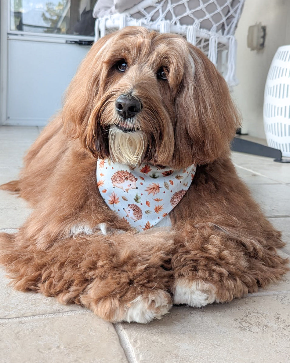 Our mission is to provide your pup with the highest quality, wearable and resilient bandanas. Designed for both indoor & outdoor wear, our bandanas are dirt & stain resistant and easy to clean, offering peace of mind and convenience. Our feel-good fabrics and tasteful designs ensure practicality and comfort without compromising on aesthetic.