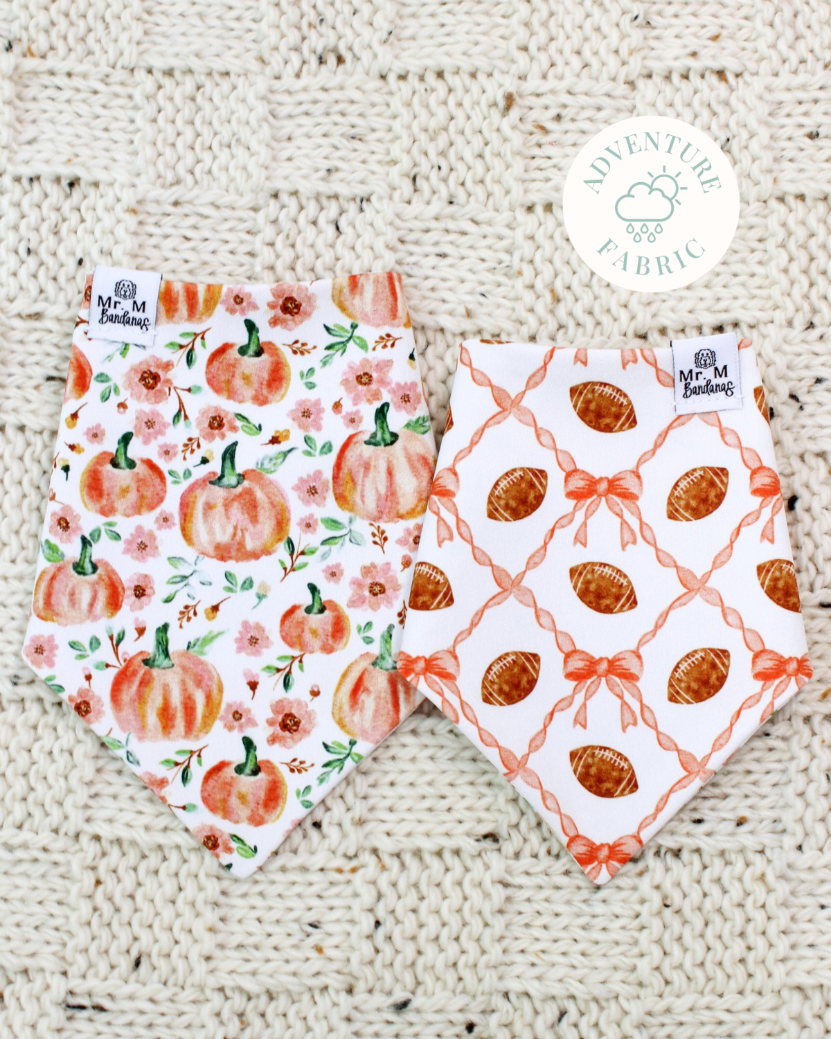 Adventure Fabric Bandana: Our most durable fabric is a slightly stretchy woven poly material that is dirt, stain & wrinkle resistant, quick-drying, and machine washable. This soft and comfortable bandana is designed for indoor & outdoor activities, keeping pup wear & tear in mind. It is non-bulky and lightweight, so it won't overheat your pup.