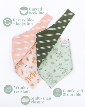 Note: Your reversible bandana will feature the two shown designs, which are not interchangeable.
